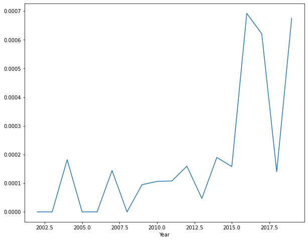 Now, if we were so inclined, we could use a loop to repeat this process for a large number of earnings calls, yielding a neatly organized dataframe containing the date, title, and text of earnings calls over time. I’ve done this so you don’t have to, and stored it as a file called “Exxon.json”. It spans 2002-2019, and contains over 10 million words’ worth of earnings calls. Let’s take a peek: